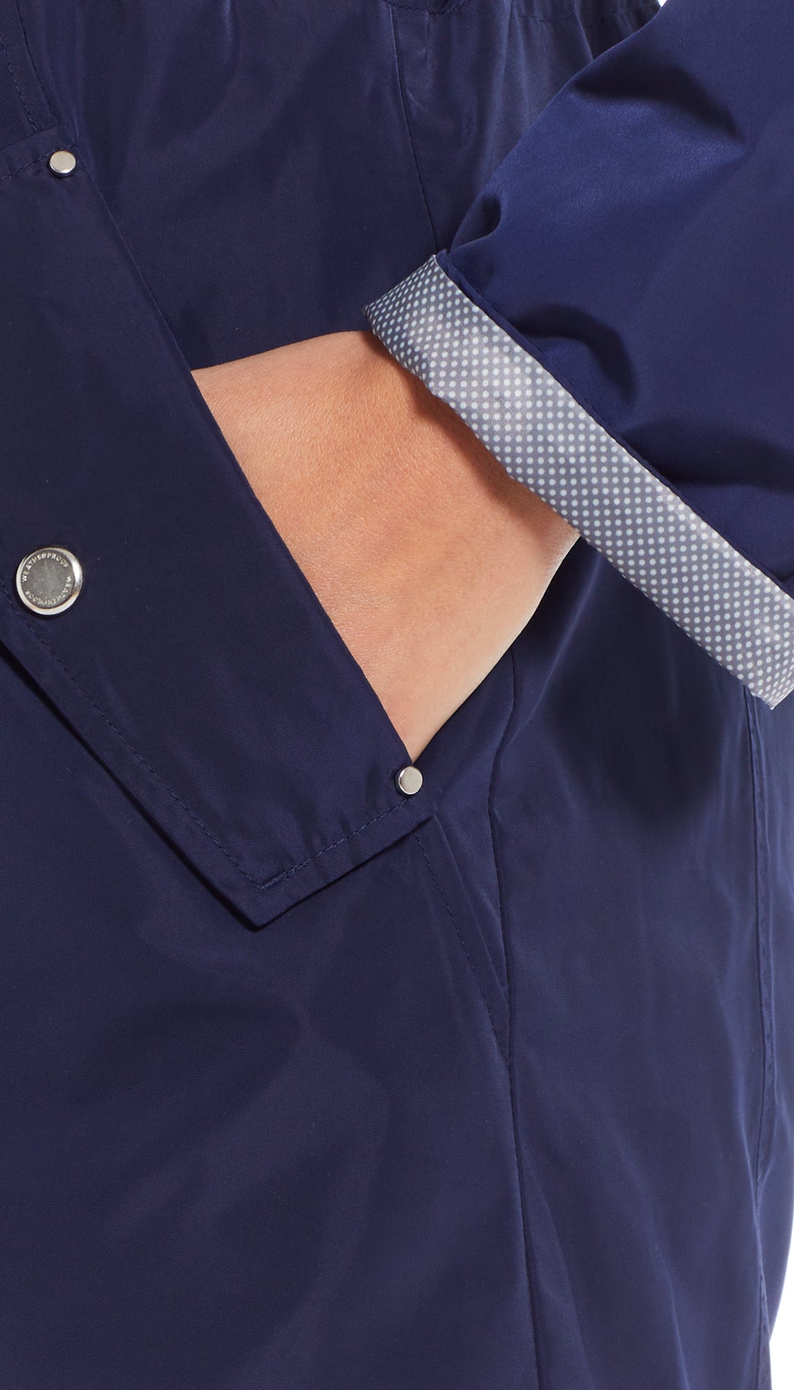 - Mini Polka Dot Lining in the Hood. Yoke and Cuffs